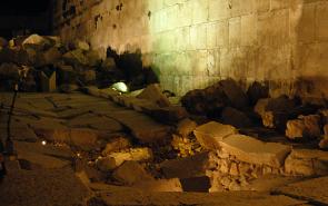 clearly see where massive stones from the temple